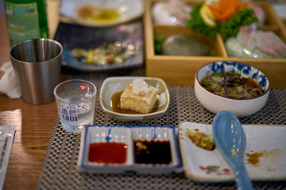 - 사시미: 숙성회의 진수를 보여줍니다. 찰기가 느껴지는 식감이 일품이며, 생선의 비린 맛 없이 깔끔하게 손질되어 나옵니다.