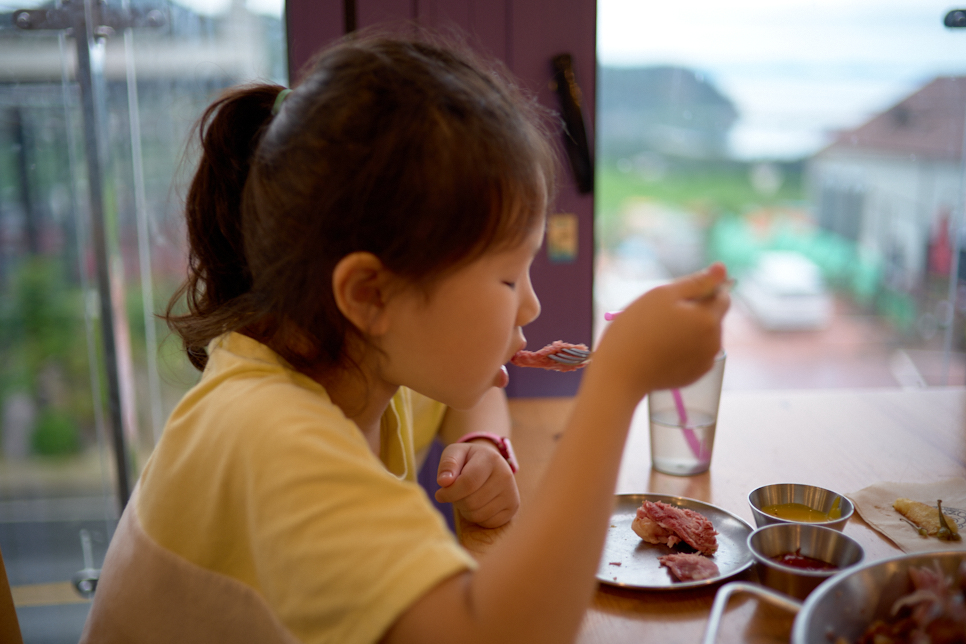 - 고기: 껍질의 바삭함은 기대 이상이었습니다. 칼 끝에서 느껴지는 "파삭" 하는 소리에 8살 딸아이는 신기한 듯 영상 촬영을 자처했죠.